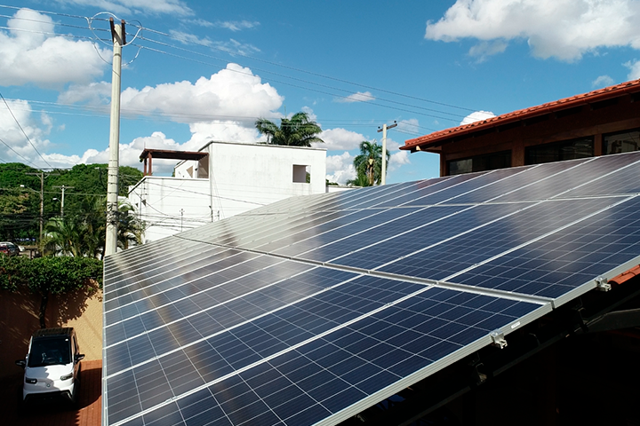 El parqueo solar fotovoltaico de Bolpegas es un sistema conectado a la red que consta de 48 paneles solares de la marca UKSOL y un inversor de red trifásico de 15kw de potencia.